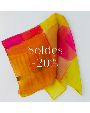 This silk chiffon square is hand-painted in our workshop in Pernes-les-Fontaines.