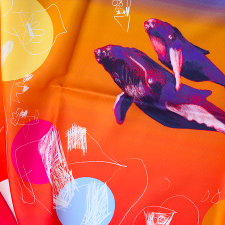 search Quick view Add to cart Orange Silk scarf Price €85.00 Multicoloured silk square scarf with an ocean and whale theme. A silk scarf in warm, shimmering colours. This square scarf is quite versatile,...