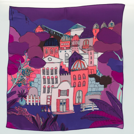 search Quick view Add to cart Salomé, little silk scarf Price €39.00 Small purple silk scarf. Small silk scarf with a Southern theme Add a touch of style with this small purple, blue, and pink silk scarf. It...
