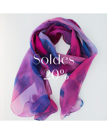 This scarf is entirely made in France: woven in the Loire region by a high-end weaving company, hand-painted in our workshop, then carefully crafted near Lyon.
