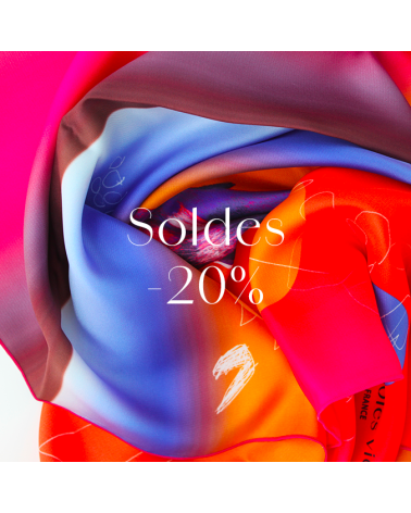 This silk scarf by Les Soies Vial was designed in our workshop, then printed and manufactured in the Lyon region of France.