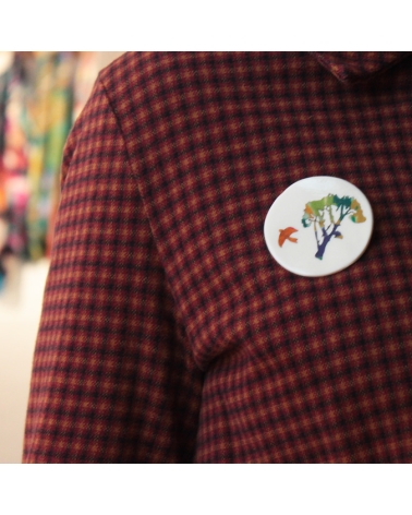 Add a touch of poetry and originality to your outfits with this handmade tree-shaped brooch, made from silk applied to porcelain.