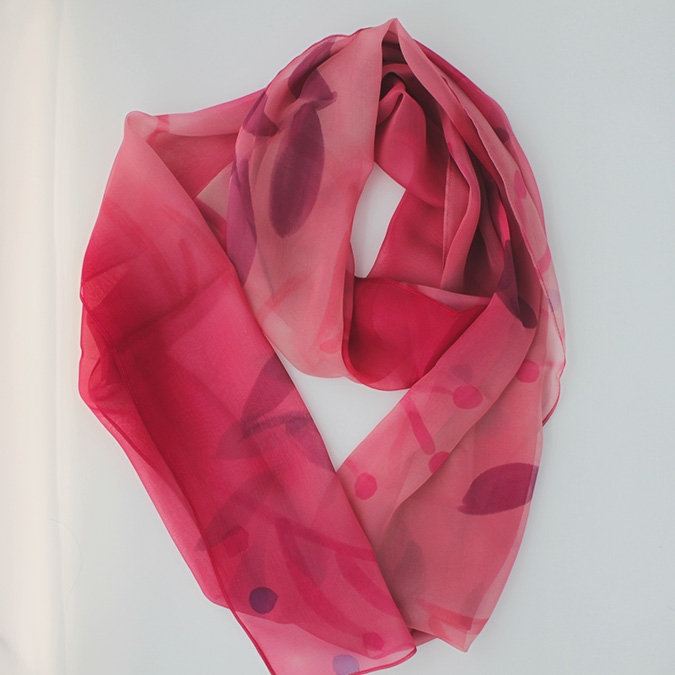Our 100% silk stole is hand-painted in shades of antique pink.
