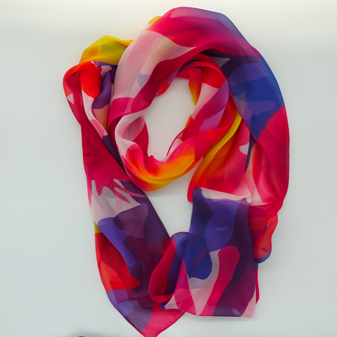 This silk shawl, with its bright and vibrant colors, adds a touch of freshness and cheerfulness to your spring outfits. A true fashion accessory, it effortlessly enhances your everyday style.
