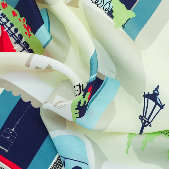 Mediterranean-patterned silk scarf, made in France.