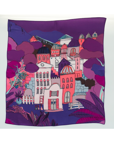 Brighten up your outfits with this women’s silk scarf in shades of purple, blue and pink, adorned with a contemporary pattern inspired by the landscapes of the South of France. This lightweight and soft Salomé Nuit silk scarf ties easily around the neck, in the hair or on a bag, for a chic and relaxed look.