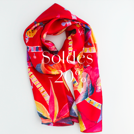 -20% search Aperçu rapide Add to cart Grande étole Peinte à la... Prix habituel 123,08 € -20% Prix 98,47 € Une pièce unique peinte à la main dans notre atelier. Un accessoire en mousseline 100% soie, très agréable à porter. Notre étole de...