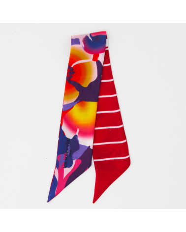 Dessiné dans notre atelier, cet accessoire en soie est ensuite imprimé et confectionné en France en région Rhône Alpes.