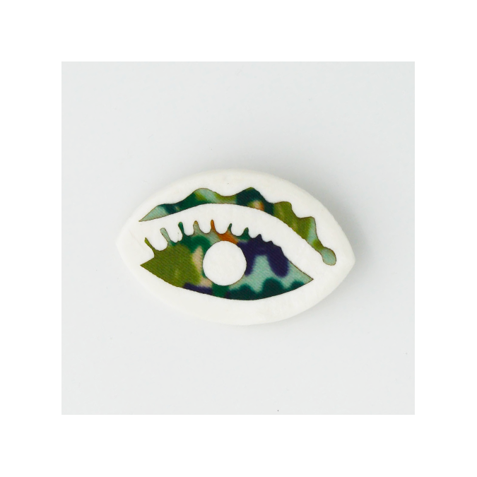 Ajoutez une touche d’audace et d’originalité à vos tenues avec cette broche artisanale en forme d’œil, réalisée en soie délicate appliquée sur de la porcelaine.Un véritable bijou textile qui attire le regard et affirme votre style avec élégance.