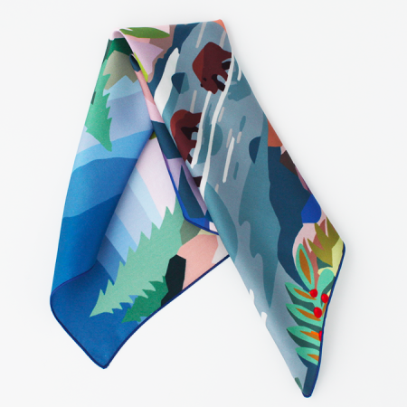 Notre petit carré de soie sur le thème de l'ours et de la montagne.