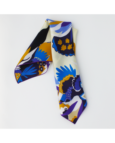 Ce foulard de soie peut être noué autour du cou comme un bandana ou porté dans les cheveux pour ajouter une touche de fantaisie et de couleurs.