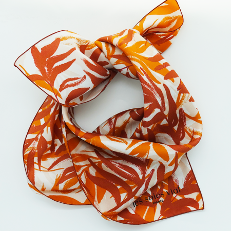 carré de soie camel feuillages