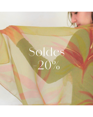 Notre étole 100% soie est peinte à la main dans notre atelier par Pascale.