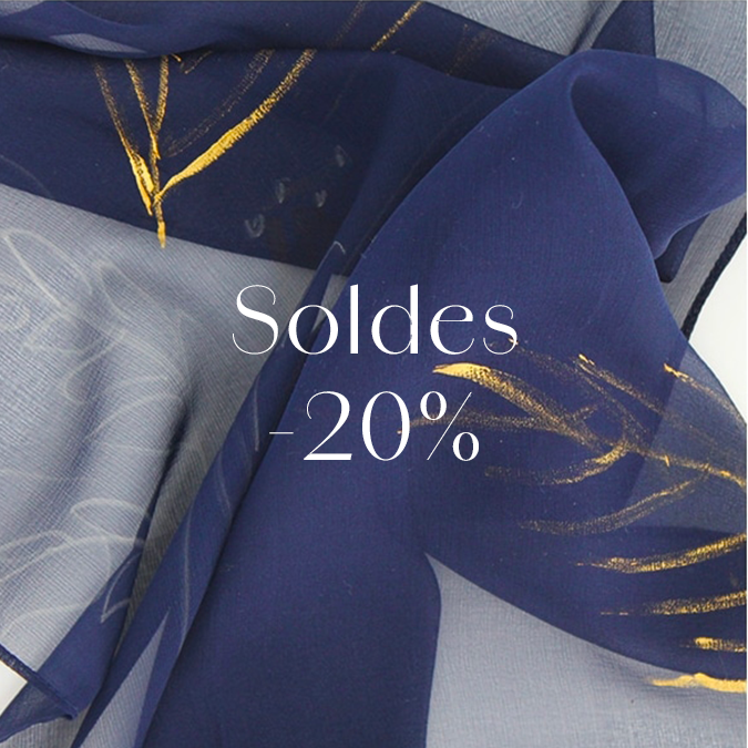 Ce carré est entièrement fabriqué en France : tissé par une entreprise de luxe en région lyonnaise, peint à la main dans notre atelier, puis soigneusement confectionné dans la Loire. Chaque pièce est unique.