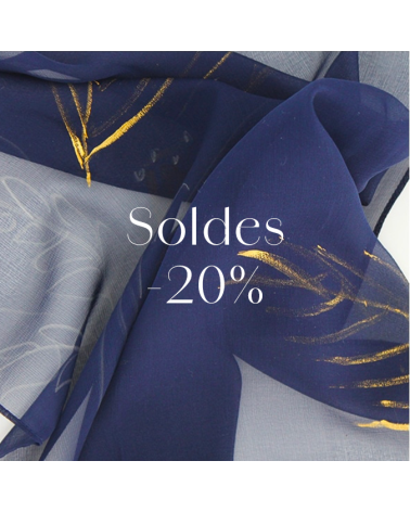 Ce carré 100% soie en mousseline est entièrement peint à la main dans notre atelier de Pernes-Les-Fontaines par Pascale VIAL.